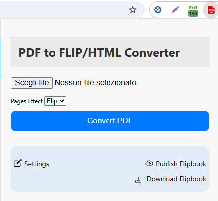 - Interfaccia semplice: basta installare l’estensione, caricare un PDF e il flipbook appare immediatamente nel browser.